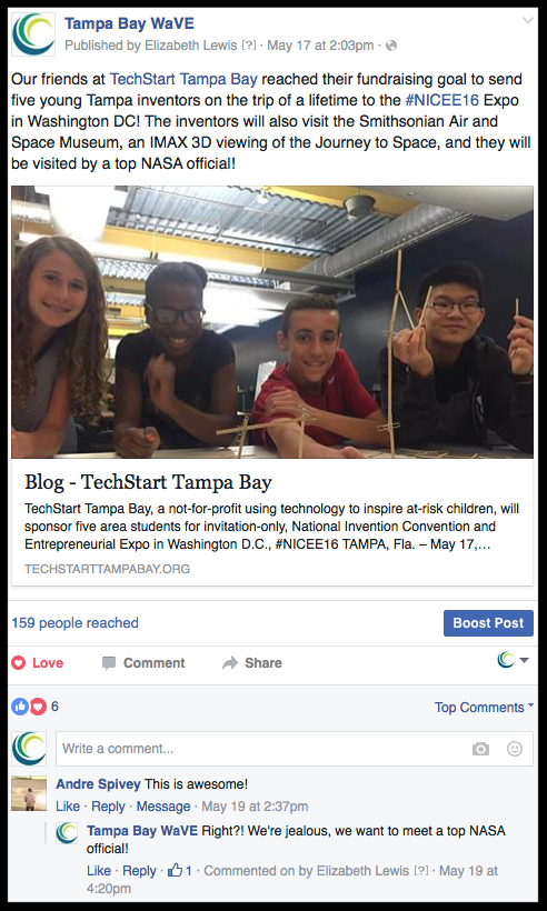 I had the pleasure of managing social media for Tampa Bay WaVE, focusing mainly on their Facebook page.