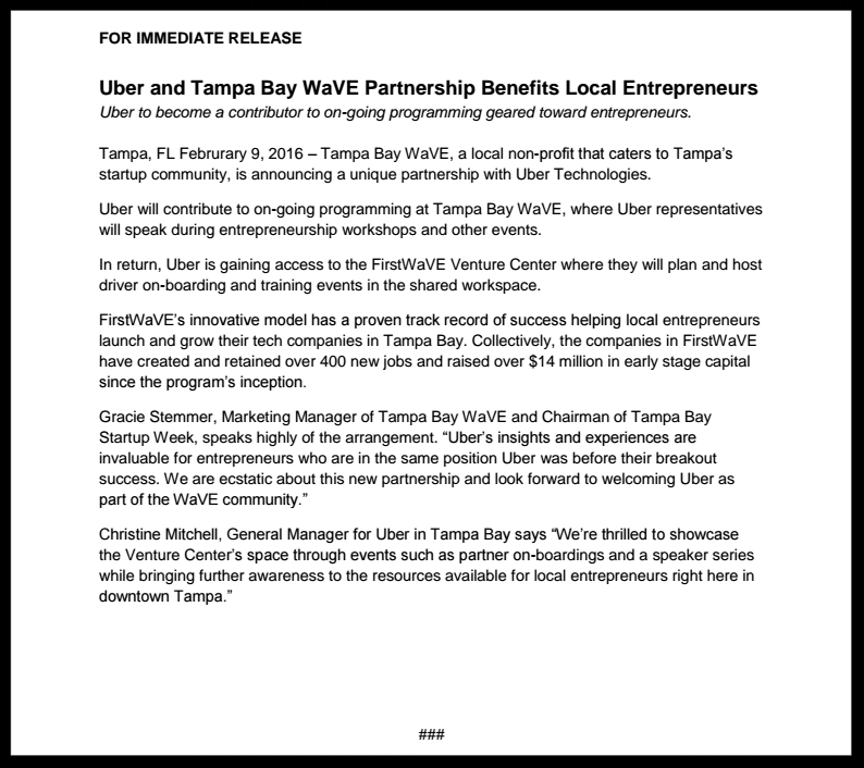 This is a blog post I worked on for Tampa Bay WaVE that began as a press release, shown below.